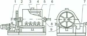 6出水系統 7 刮刀系統 8機架 9料盤